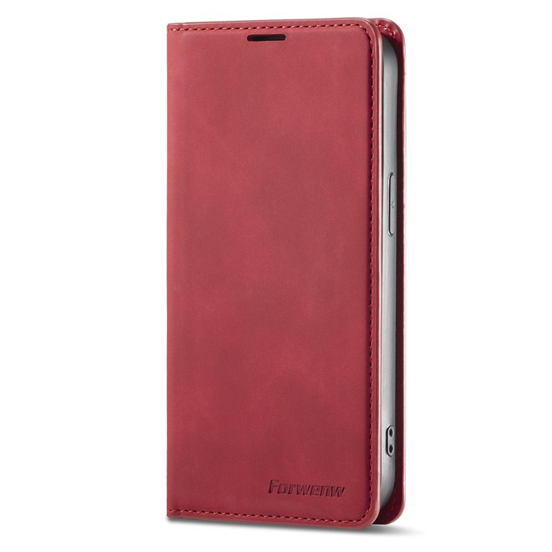 FORWENW iPhone 15 Pro Fodral i Äkta läder - Röd