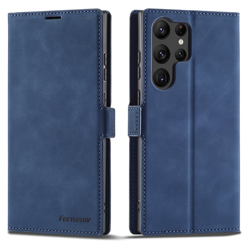 FORWENW Samsung Galaxy S23 Ultra Fantasy Fodral - Äkta läder - Blå