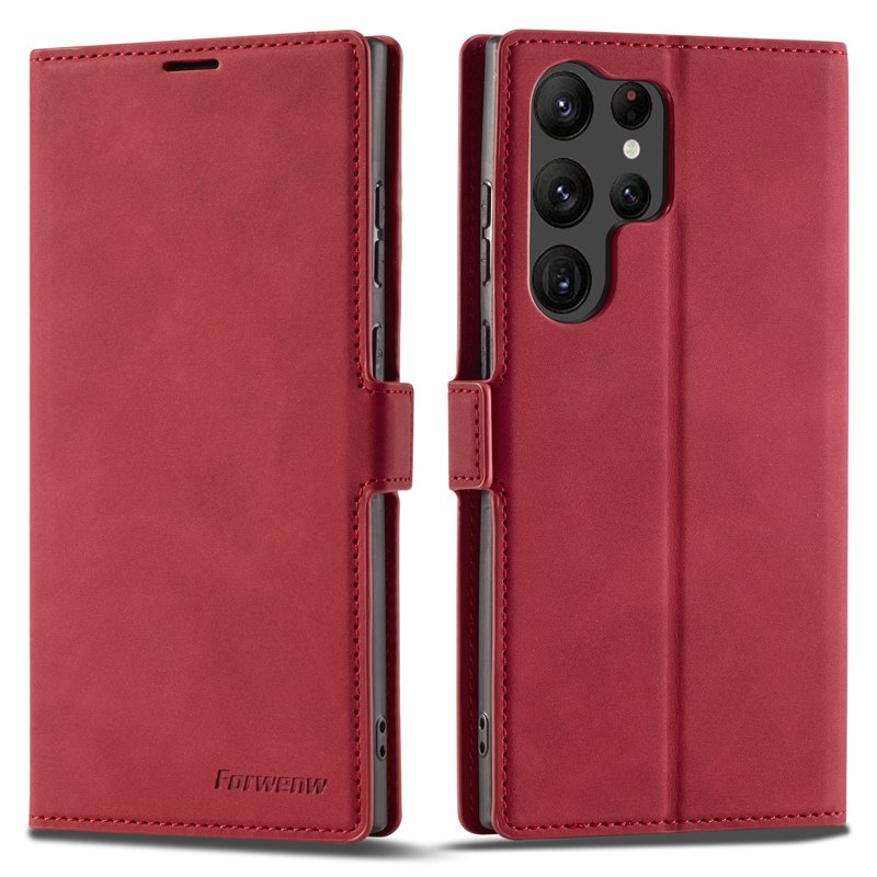 FORWENW Samsung Galaxy S23 Ultra Fantasy Fodral - Äkta läder - Röd