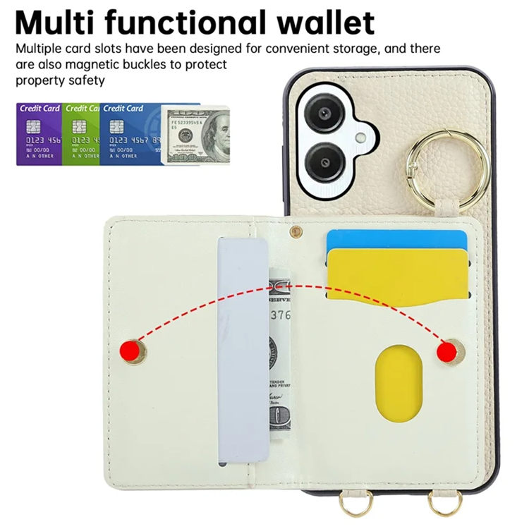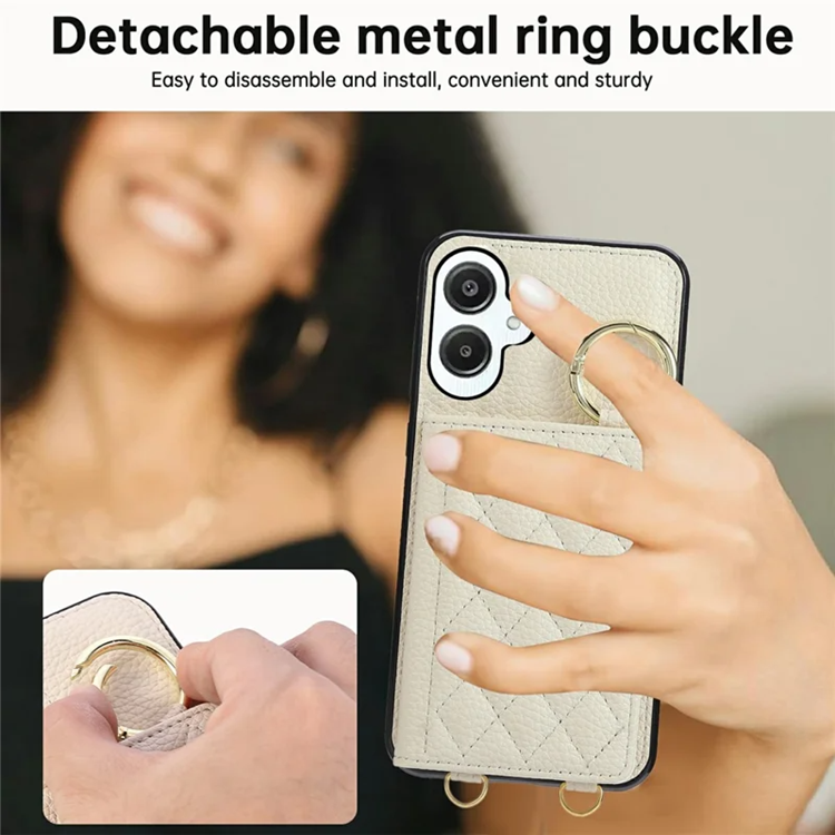 Galaxy A06 4G / 5G Mobilskal Korthållare Kickstand Rhombus Läder TPU med Axelrem - Beige