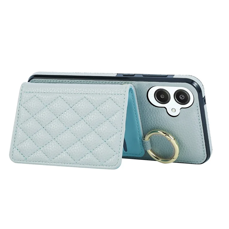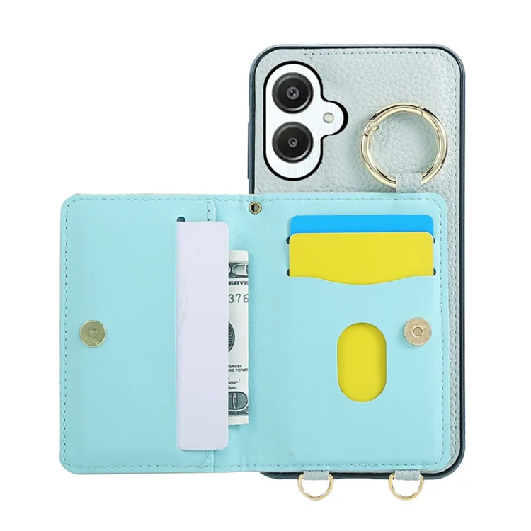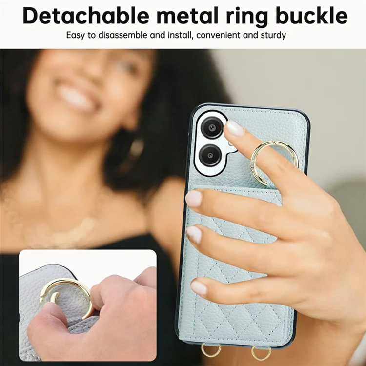 Galaxy A06 4G/5G Mobilskal Korthållare Kickstand Rhombus Läder TPU med Axelrem - Blå
