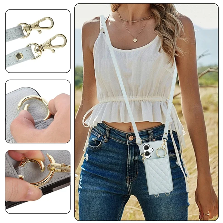 Den quiltade ytan med klassiskt diamantmönster i PU-läder ger ett lyxigt och tidlöst uttryck som förvandlar mobilen till en stilaccessoar. Samtidigt är skalet otroligt praktiskt med flera kortfack och magnetiskt spänne som gör att du alltid har kort, kontanter och småsaker nära till hands. Med det justerbara axelbandet bär du mobilen bekvämt över axeln eller crossbody, perfekt för resor, shopping eller vardagliga ärenden.