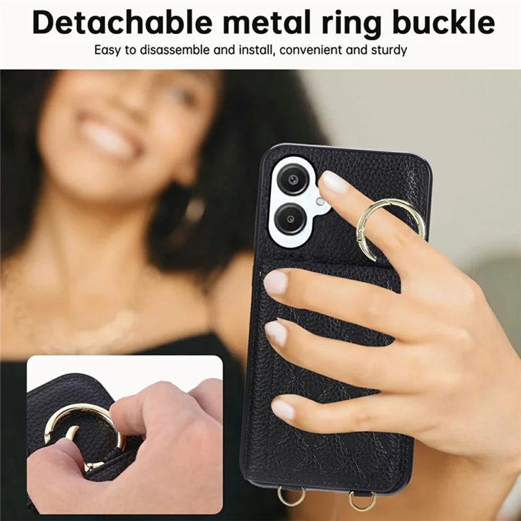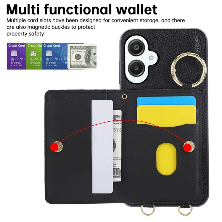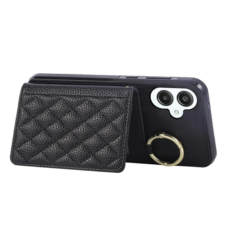Galaxy A06 4G/5G Mobilskal Korthållare Kickstand Rhombus Läder TPU med Axelrem - Svart