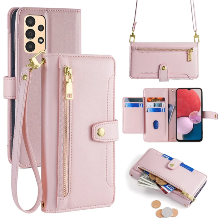 Handla denna produkt Galaxy A13 4G Konstläder Plånboksfodral Anti-Drop - Rosa