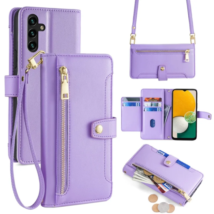 Galaxy A13 5G Plånboksfodral PU Läder TPU Adjustable Long Strap - Lila