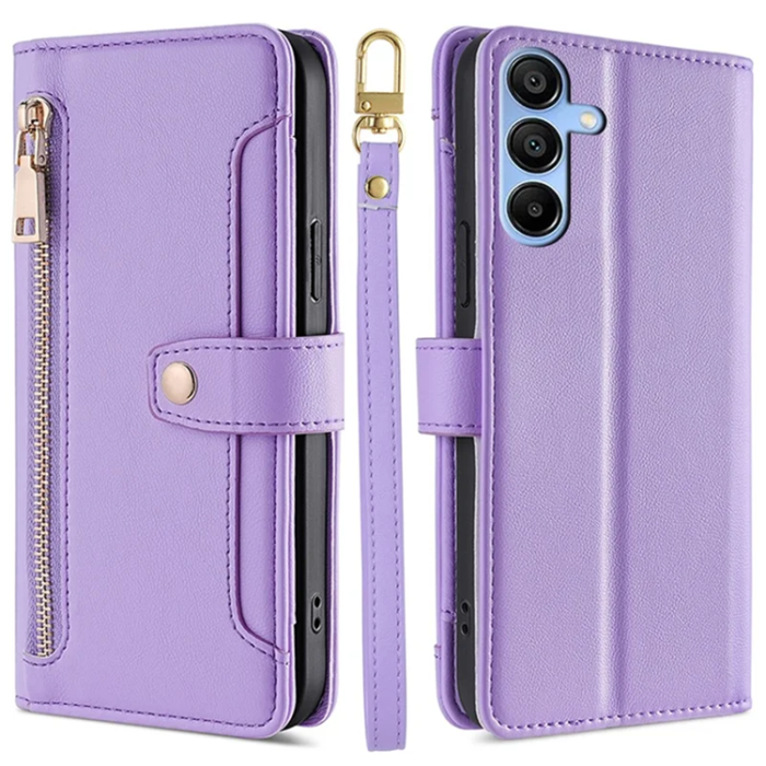 Galaxy A15 5G Plånboksfodral Läder Zipper Pocket - Lila
