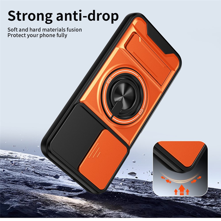 Galaxy A16 Mobilskal MagSafe med Camera Lens Slider Magnetisk Ringhållare Foldable Kickstand TPU PC - Orange