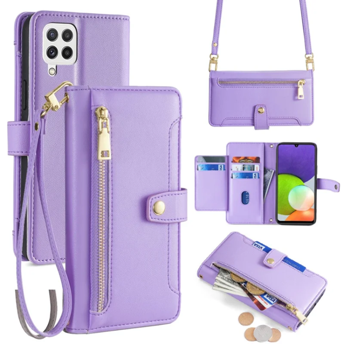Galaxy A22 4G Plånboksfodral med 2 Rem (Lila)