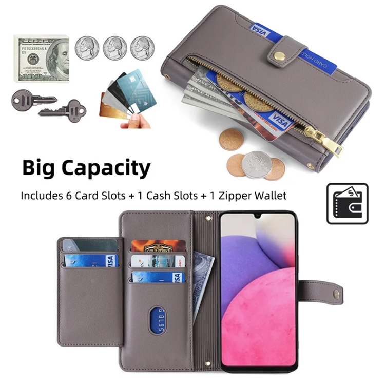 Galaxy A33 5G Plånboksfodral Zipper Pocket med Axelrem - Grå