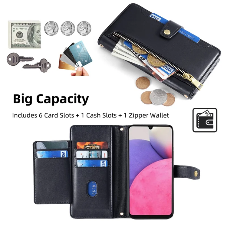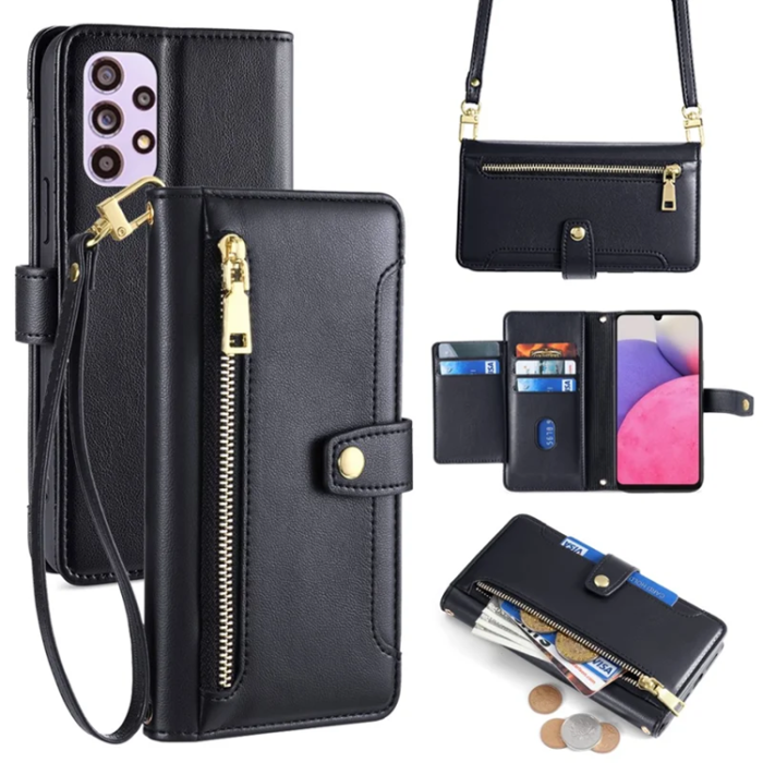 Galaxy A33 5G Plånboksfodral Zipper Pocket med Axelrem - Svart