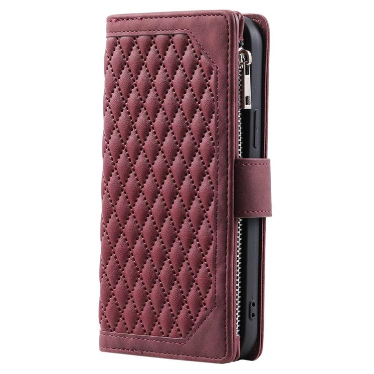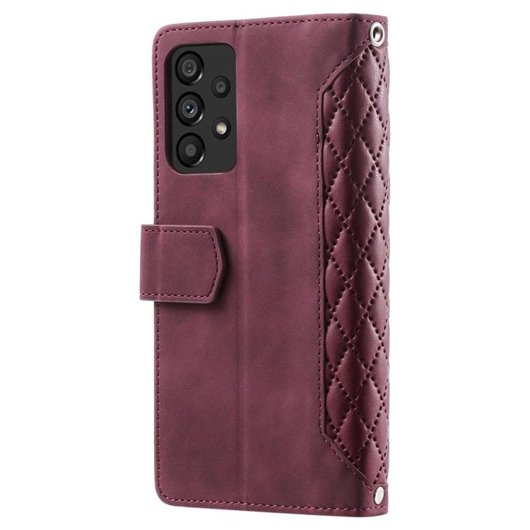 Galaxy A33 5G Plånboksfodral Rhombus Grid Texture Folio Flip Magnetic PU Läder Zipper Pocket Stand - Vinröd