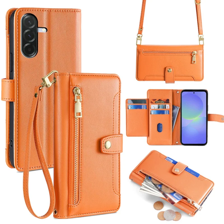 Galaxy A36 5G Plånboksfodral Läder Zipper Pocket med 2 Rem - Orange