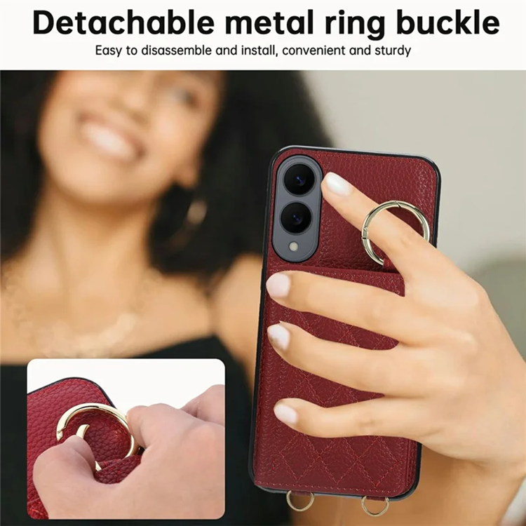 Galaxy A56 5G Mobilskal Korthållare Kickstand Rhombus Läder TPU med Axelrem - Röd