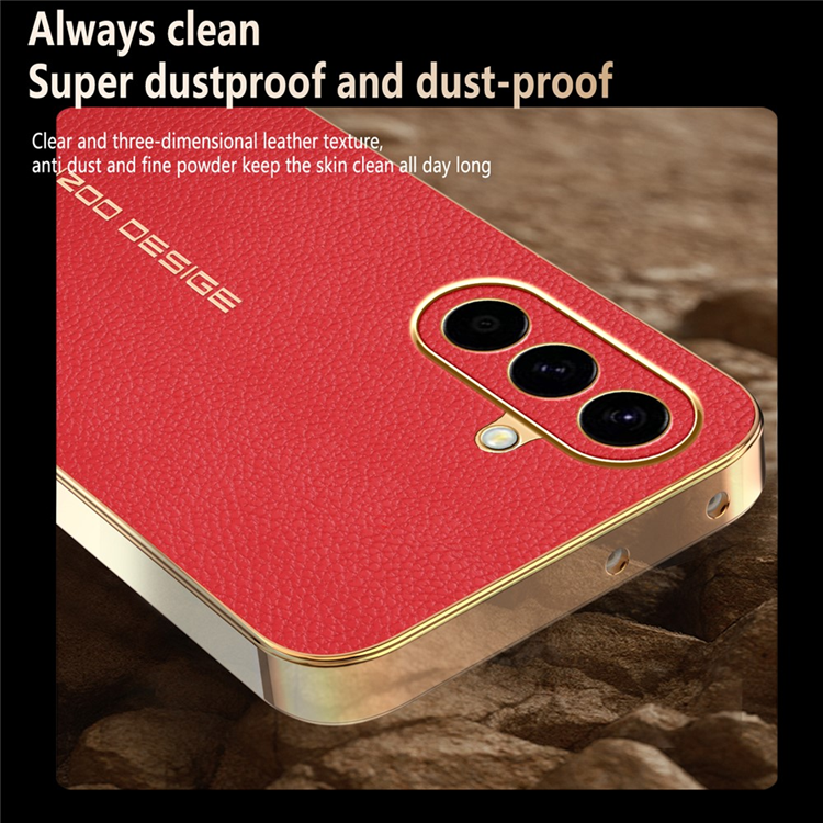 Ge din Samsung Galaxy A57 ett elegant och långvarigt skydd med ett mobilskal som kombinerar sofistikerad design med avancerad hållbarhet. Den exklusiva litchi-texturerade PU-ytan ger en lyxig läderkänsla som både syns och känns, samtidigt som den silkeslena finishen gör mobilen bekväm att hålla i handen hela dagen. Den elektropläterade ramen förstärker det premiumintryck som passar perfekt för dig som vill att din mobil ska se lika exklusiv ut som den är kraftfull.