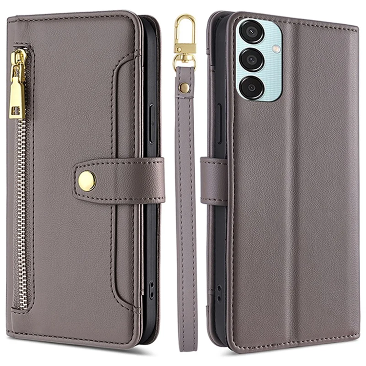 Galaxy M15 5G Plånboksfodral Läder Zipper med 2 Rem - Grå