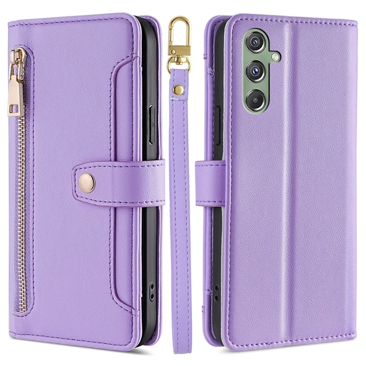 Galaxy M34 5G Plånboksfodral Zipper Läder Anti-Drop med 2 Rem - Lila