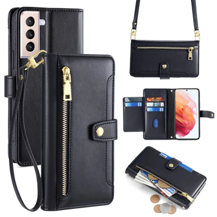 Galaxy S21 5G Plånboksfodral PU-läder Zipper Pocket - Svart