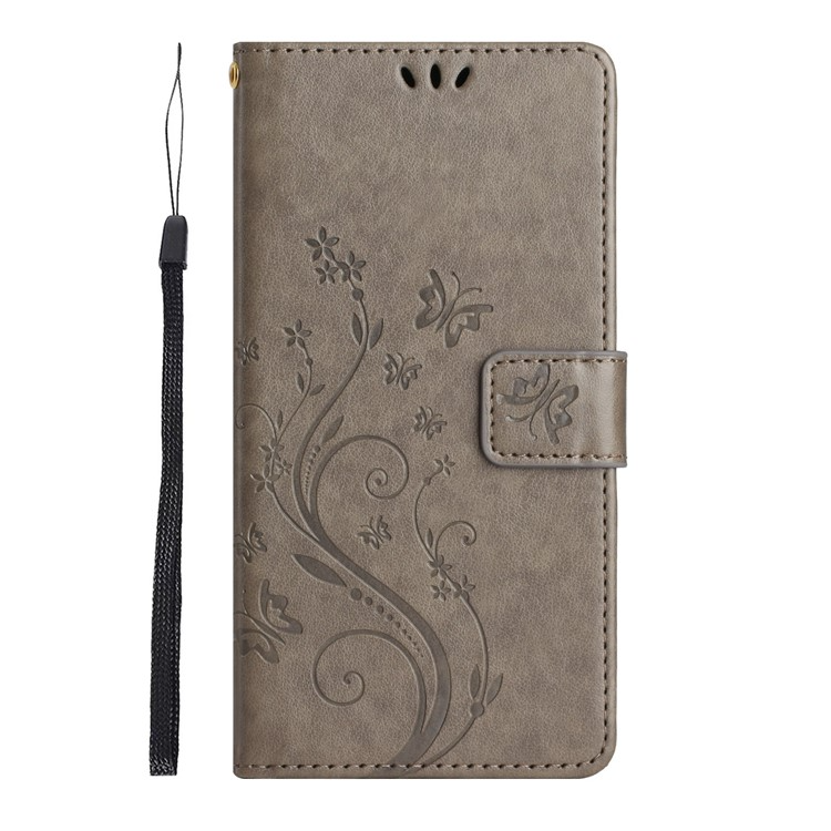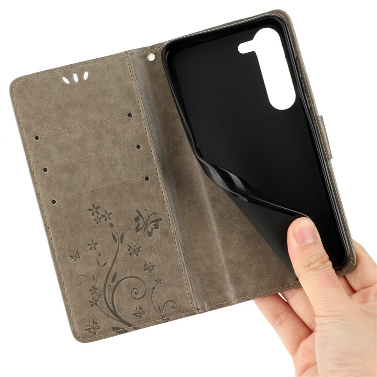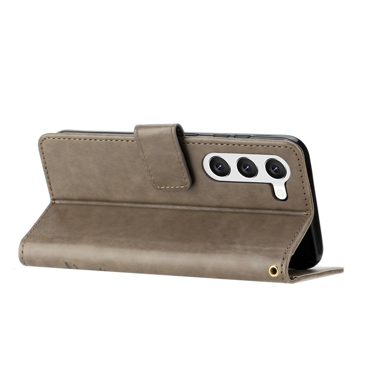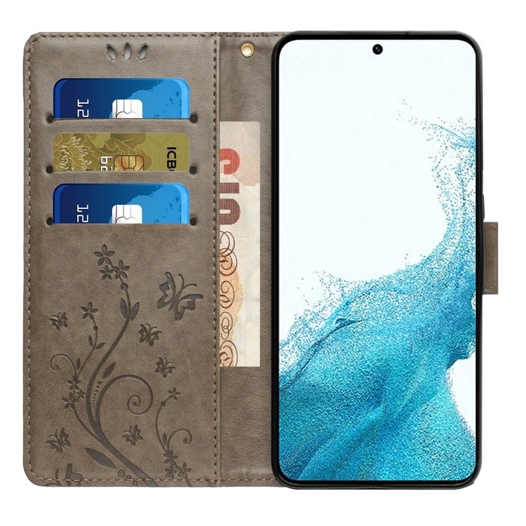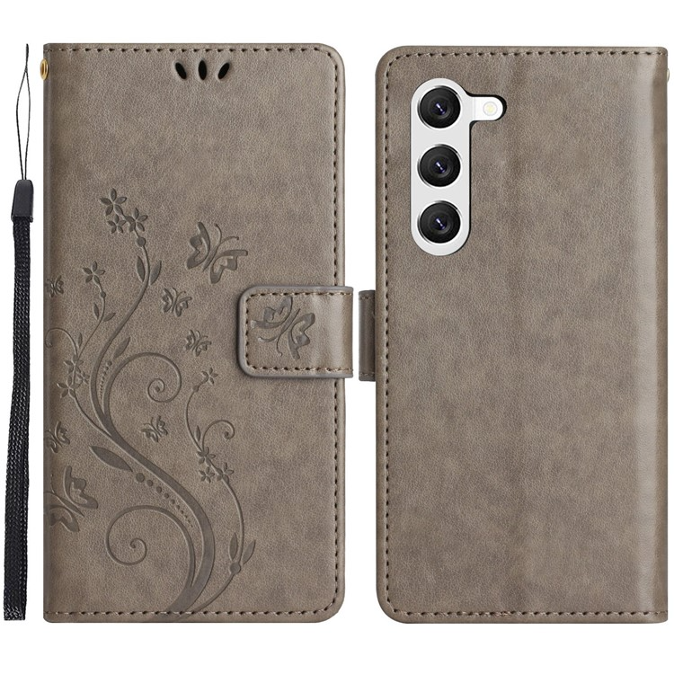 Galaxy S23 Plånboksfodral Imprinting Flower Butterfly Anti-scratch PU Läder Folio Flip - Grå