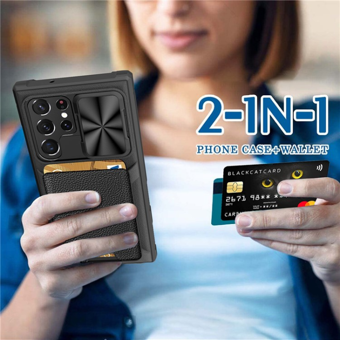 Galaxy S23 Plus Mobilskal Detachable Korthållare PC+TPU med Kamera Slider - Svart