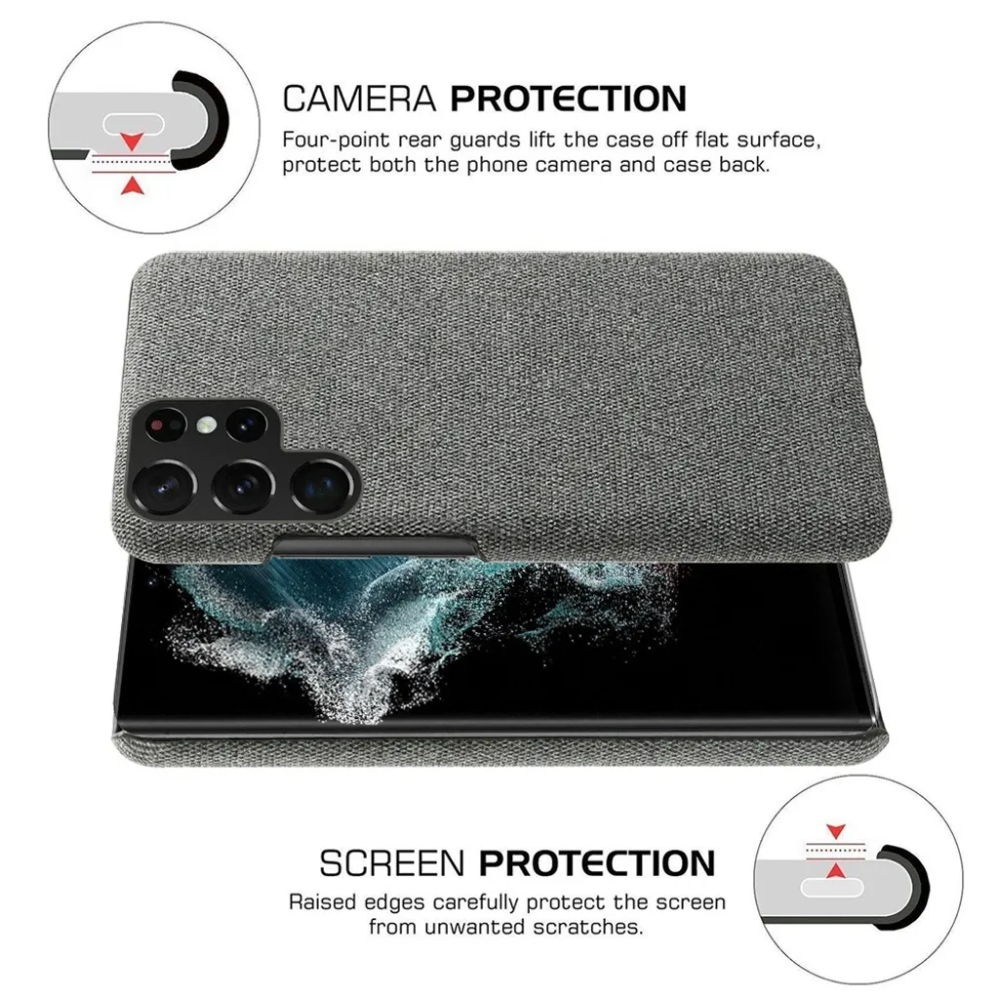 Fint, stöttåligt, skyddande, tunt, texturerat Samsung Galaxy S23 Ultra smartphonefodral.