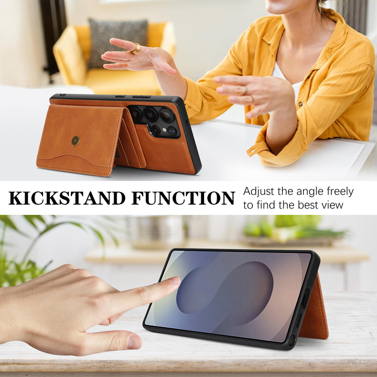 Galaxy S23 Ultra Mobilskal MagSafe med Detachable Korthållare Kickstand PU-Läder Coated TPU - Brun