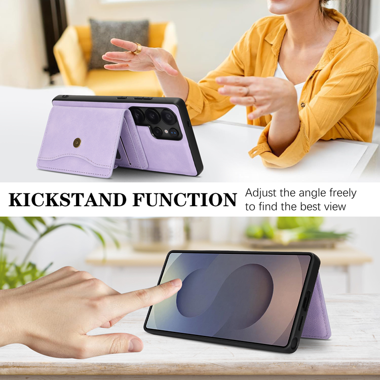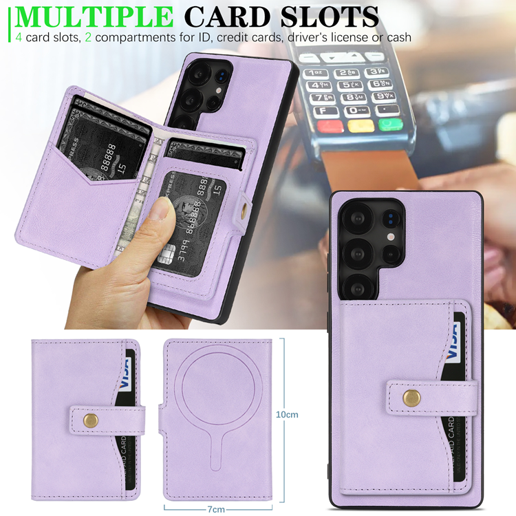 Galaxy S23 Ultra Mobilskal MagSafe med Detachable Korthållare Kickstand PU-Läder Coated TPU - Lila
