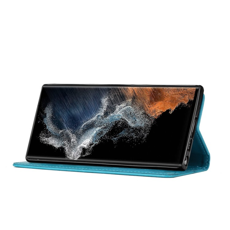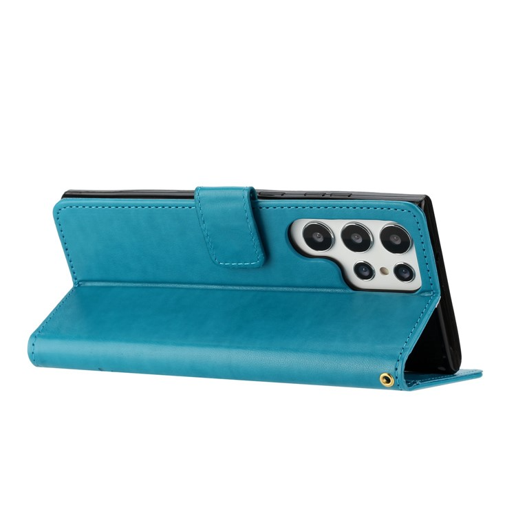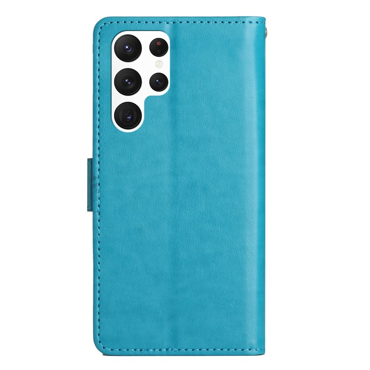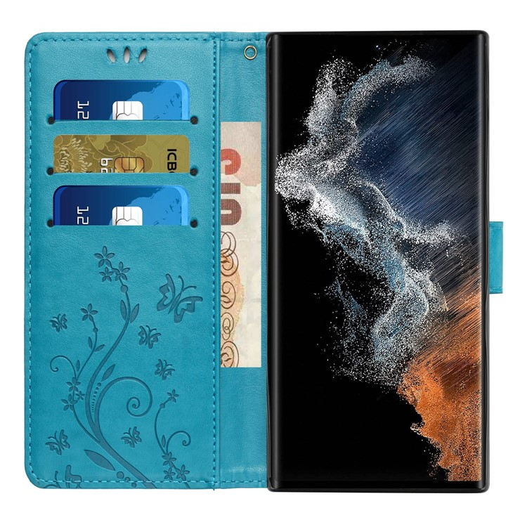 Galaxy S23 Ultra Plånboksfodral Imprinting Flower Butterfly Anti-scratch PU Läder Folio Flip - Blå