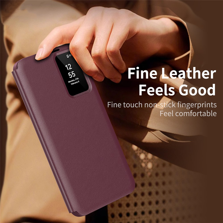 Galaxy S24 Plånboksfodral View Window Läder - Vinröd