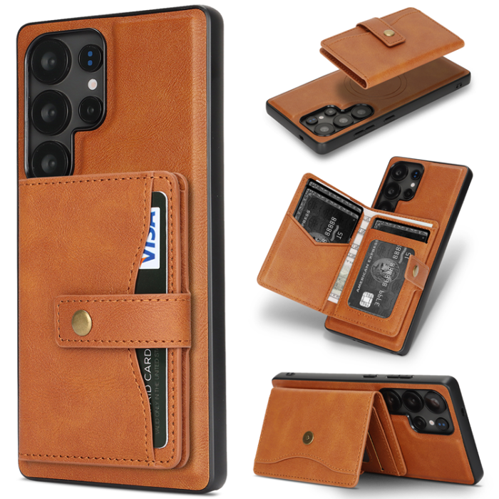 Galaxy S24 Ultra Mobilskal MagSafe med Detachable Korthållare Kickstand PU-Läder Coated TPU - Brun