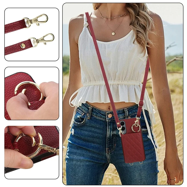 Den quiltade ytan med klassiskt diamantmönster i PU-läder ger ett lyxigt och tidlöst uttryck som förvandlar mobilen till en stilaccessoar. Samtidigt är skalet otroligt praktiskt med flera kortfack och magnetiskt spänne som gör att du alltid har kort, kontanter och småsaker nära till hands. Med det justerbara axelbandet bär du mobilen bekvämt över axeln eller crossbody, perfekt för resor, shopping eller vardagliga ärenden.