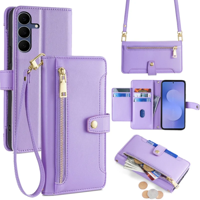 Galaxy S25 FE Plånboksfodral Läder Zipper Pocket med 2 Rem - Lila