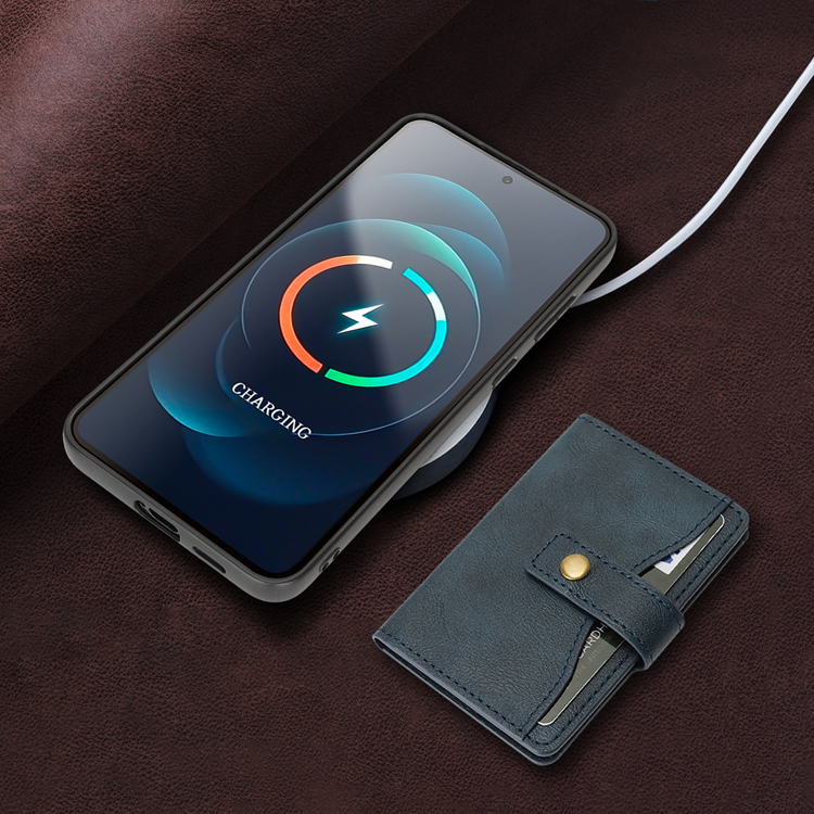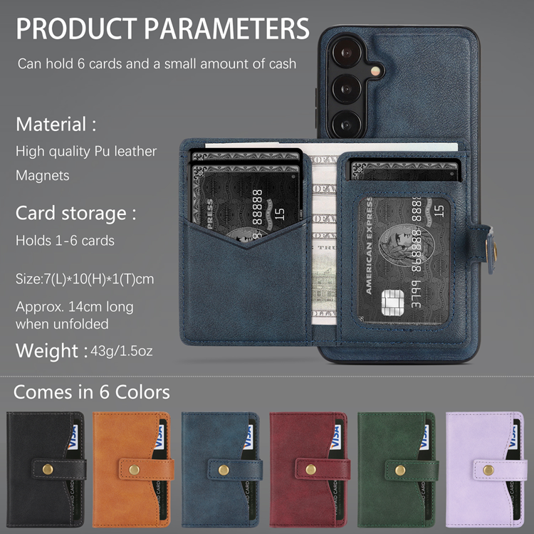 Galaxy S25 Plus Mobilskal MagSafe med Detachable Korthållare Kickstand PU-Läder Coated TPU - Blå