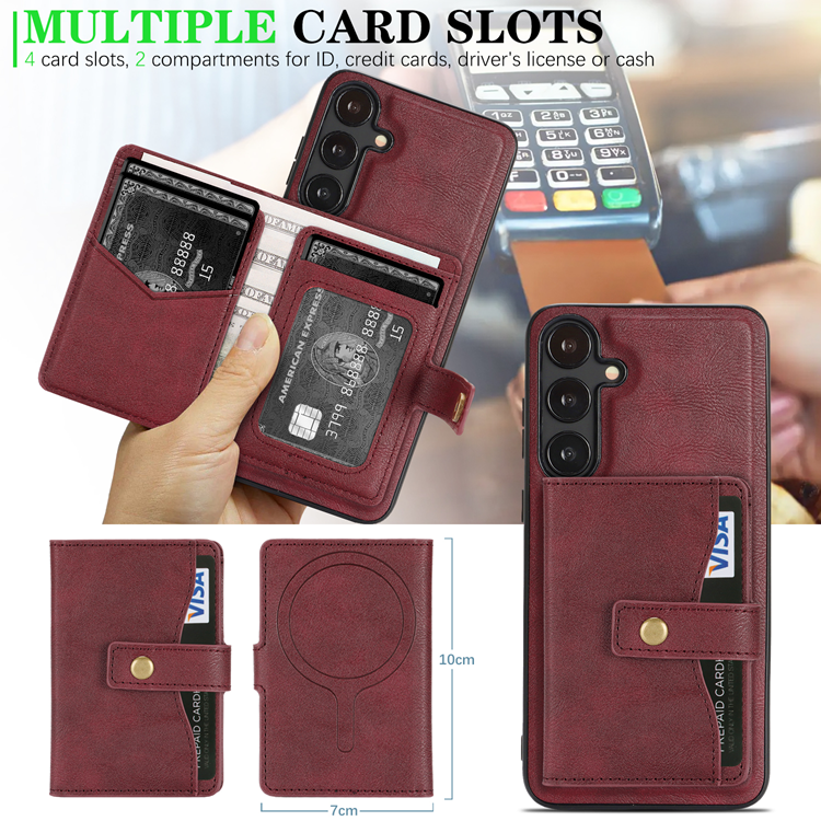 Galaxy S25 Plus Mobilskal MagSafe med Detachable Korthållare Kickstand PU-Läder Coated TPU - Röd