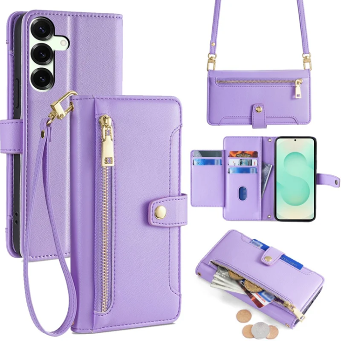 Galaxy S25 Plus Plånboksfodral Läder Zipper Pocket med 2 Rem - Lila