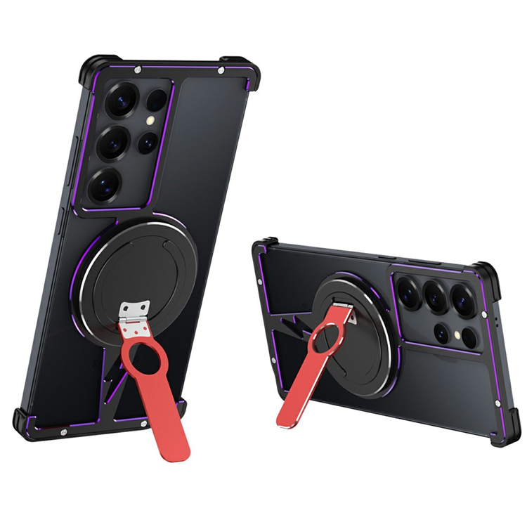 Galaxy S25 Ultra Mobilskal Aluminium Alloy Ramlös Kickstand - Svart/Lila