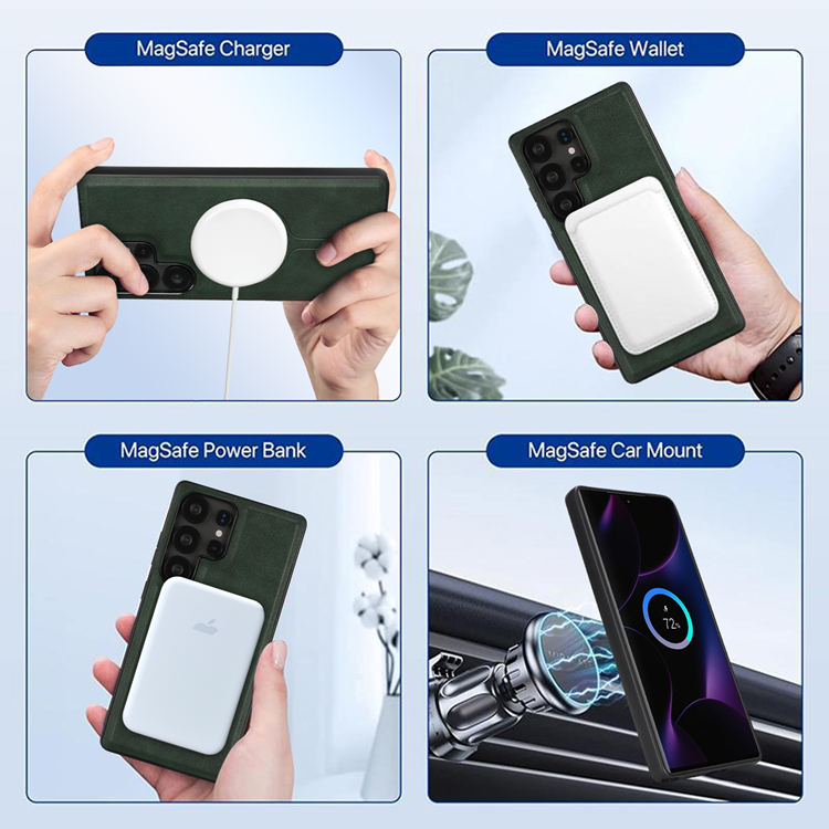 Galaxy S25 Ultra Mobilskal MagSafe med Detachable Korthållare Kickstand PU-Läder Coated TPU - Grön