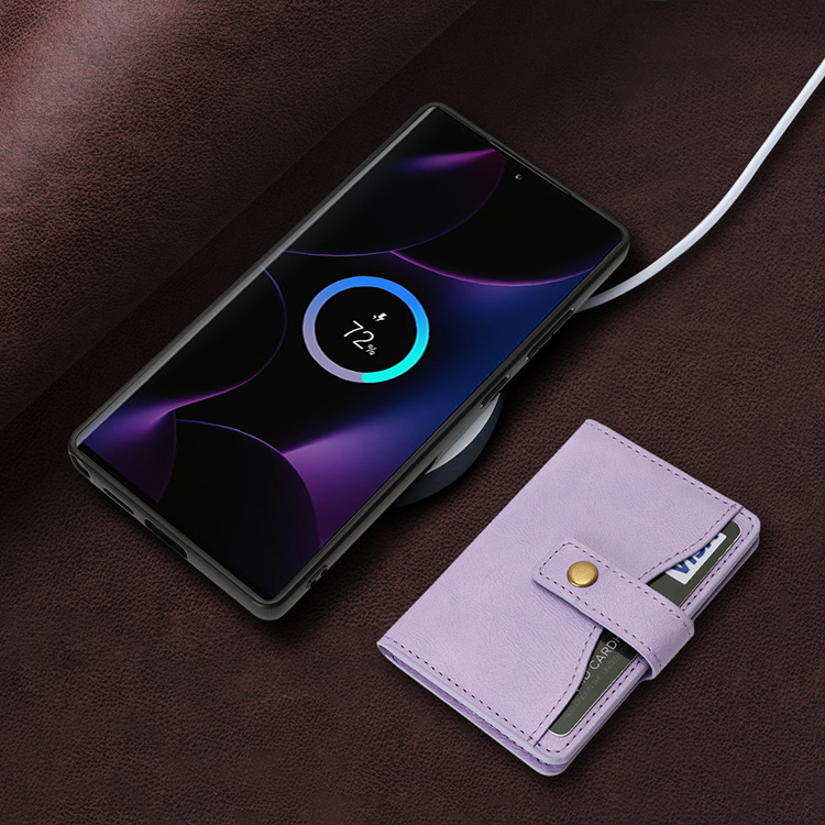 Galaxy S25 Ultra Mobilskal MagSafe med Detachable Korthållare Kickstand PU-Läder Coated TPU - Lila