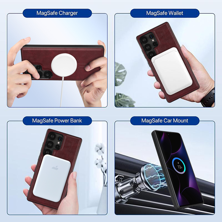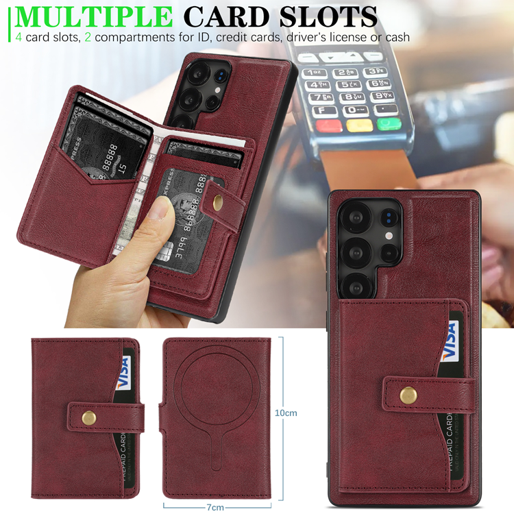 Galaxy S25 Ultra Mobilskal MagSafe med Detachable Korthållare Kickstand PU-Läder Coated TPU - Röd