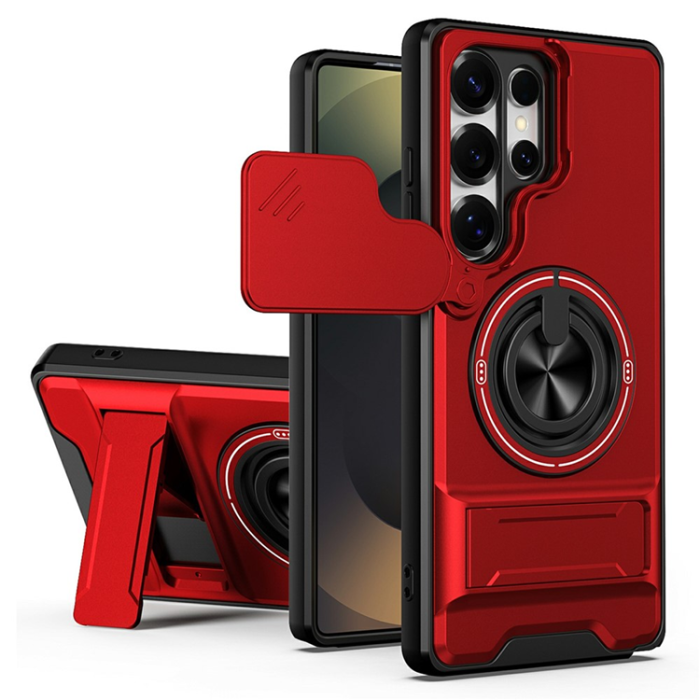 Galaxy S25 Ultra Mobilskal MagSafe med Camera Lens Slider Ringhållare (Röd)