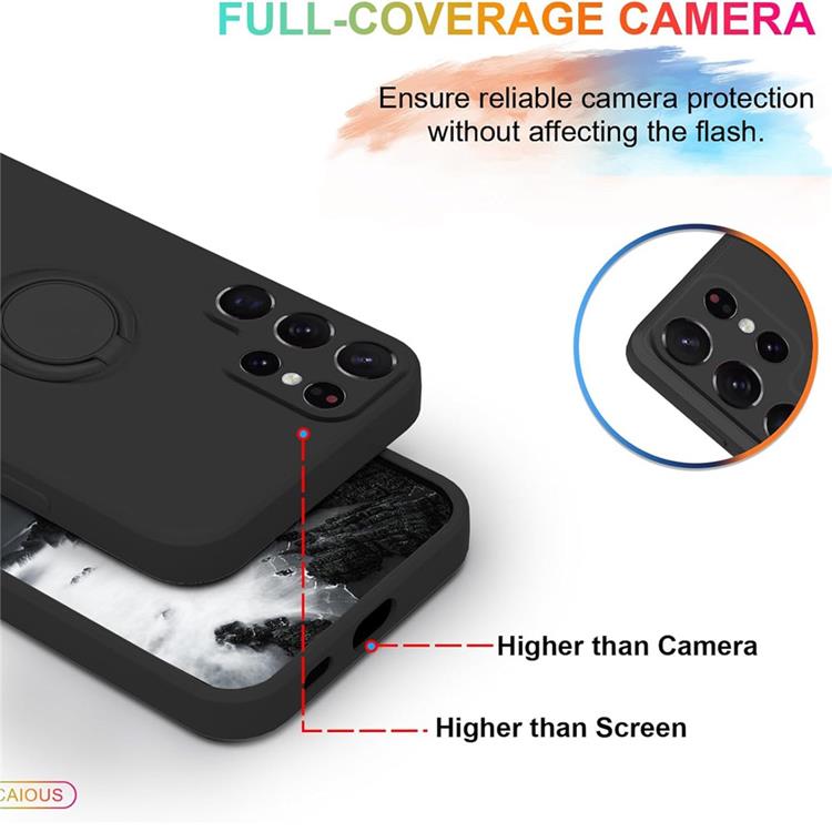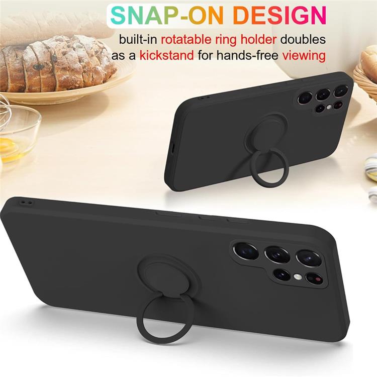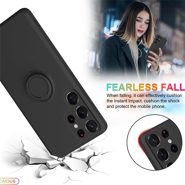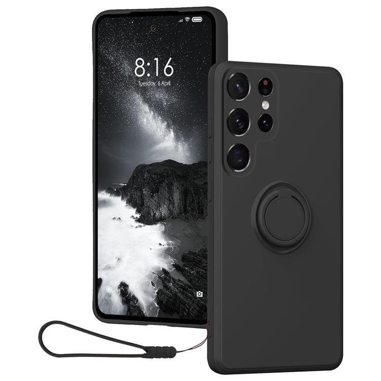 Galaxy S25 Ultra Mobilskal Ring Kickstand Silikon med Rem - Svart