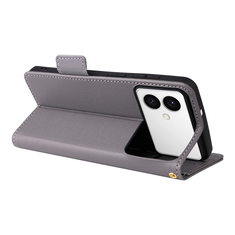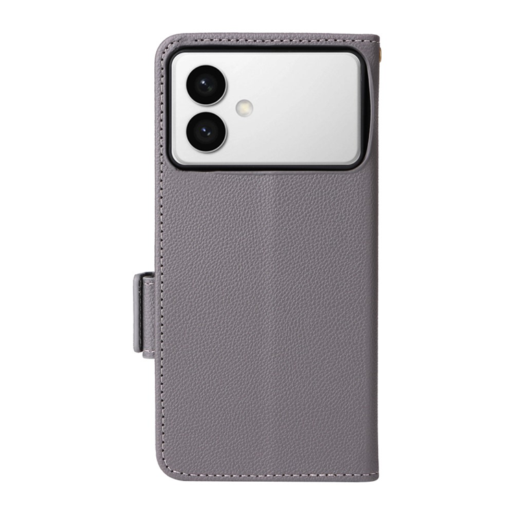 Galaxy S26 Edge Plånboksfodral Litchi Läder med Handleds Rem - Grå