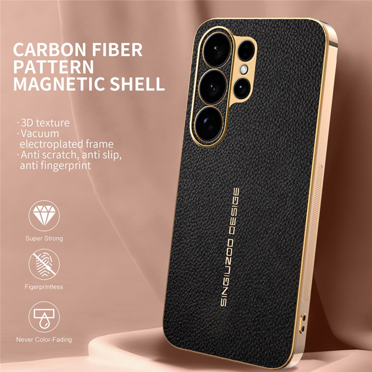Galaxy S26 Ultra Mobilskal Litchi Texture Anti Scratch TPU-läder och PU - Svart
