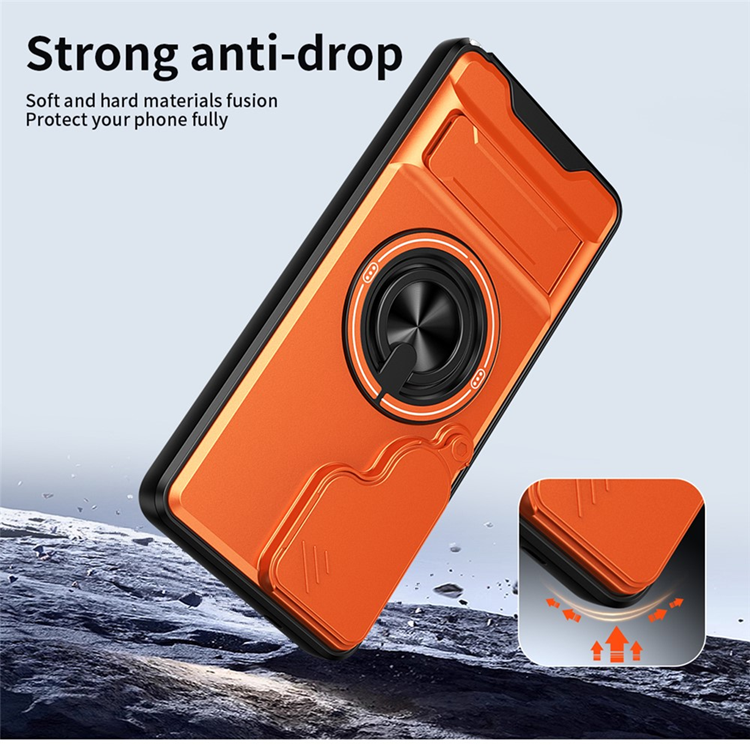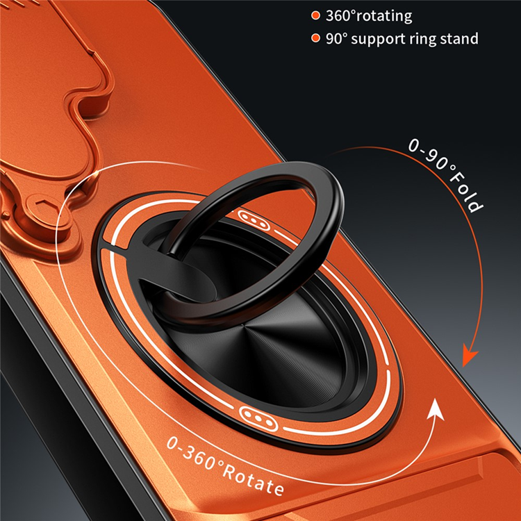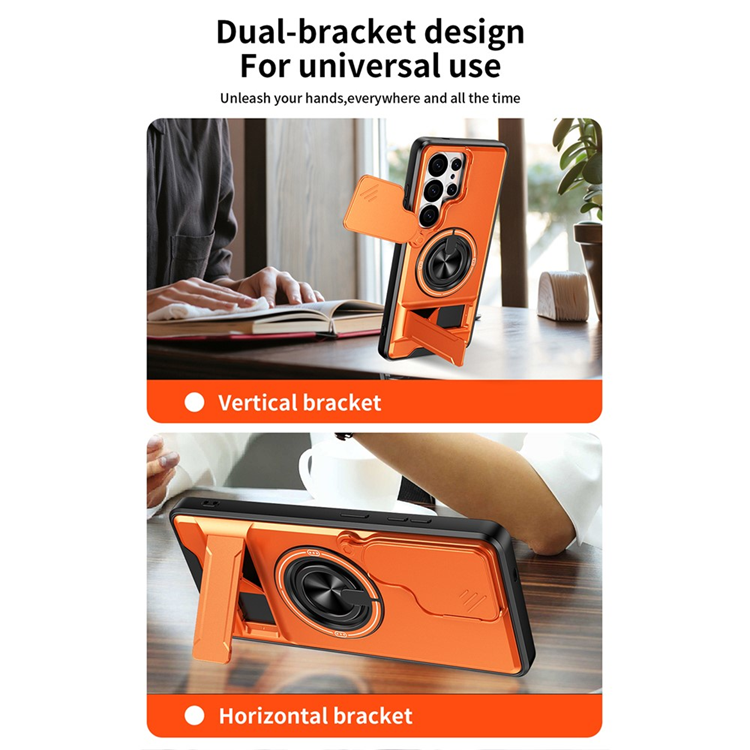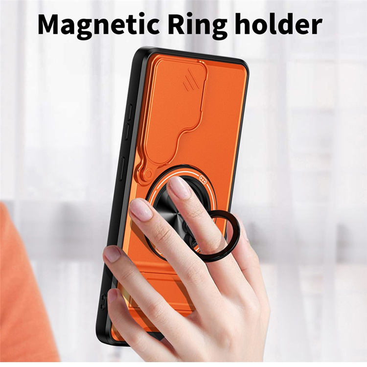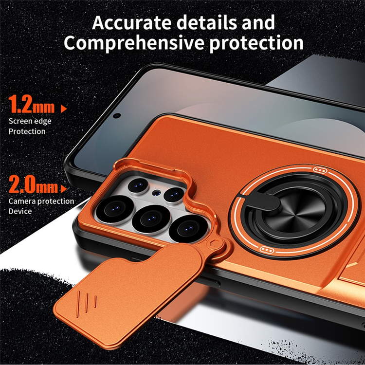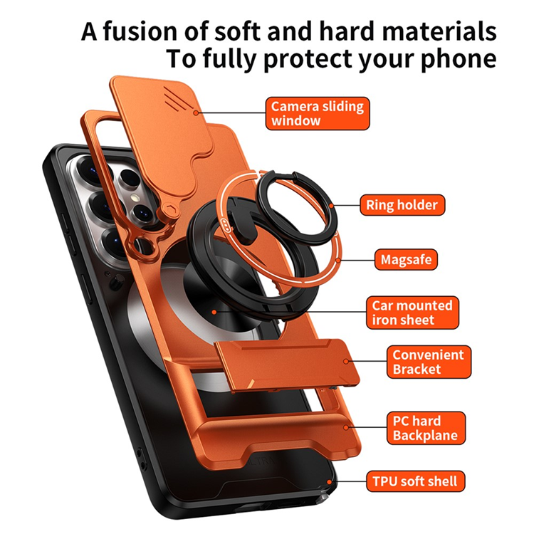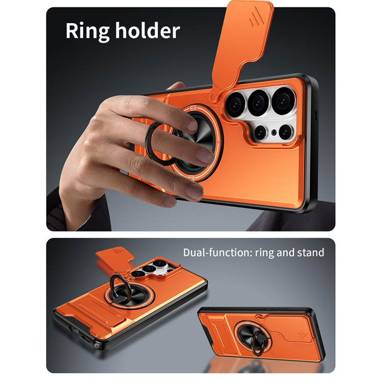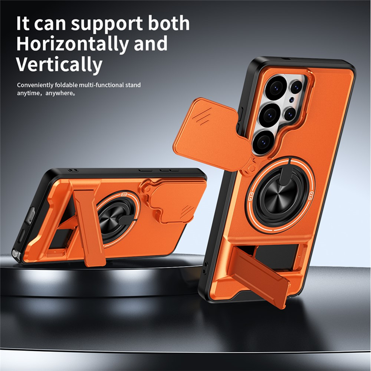 Galaxy S26 Ultra Mobilskal MagSafe med Camera Lens Slider Magnetisk Ringhållare Foldable Kickstand TPU PC - Orange