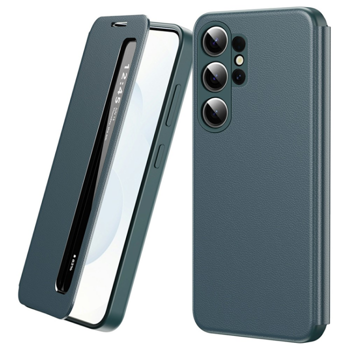 Galaxy S26 Ultra Mobilskal Smart View Window Läder - Grön