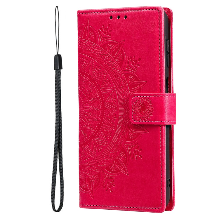 Den präglade mandalablomman ger skalet en unik, konstnärlig karaktär som lyfter din mobil till en ny nivå av stil. Med sitt vikbara stativ får du bekväm handsfree-visning, och den inbyggda plånboksfunktionen med kortfack och sedelficka gör det enkelt att bära allt du behöver i ett. Den medföljande handledsremmen gör det dessutom smidigt att ta med sig – oavsett vart dagen tar dig.