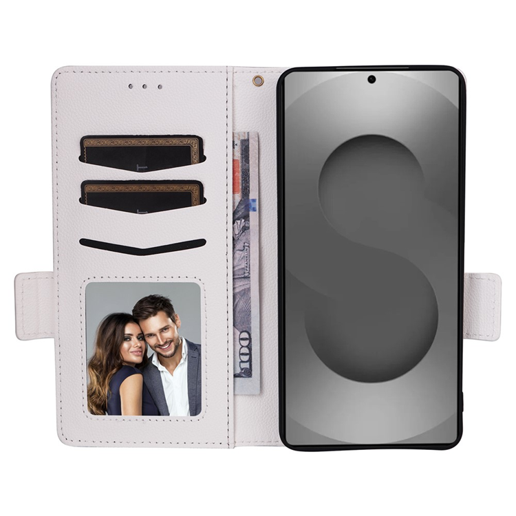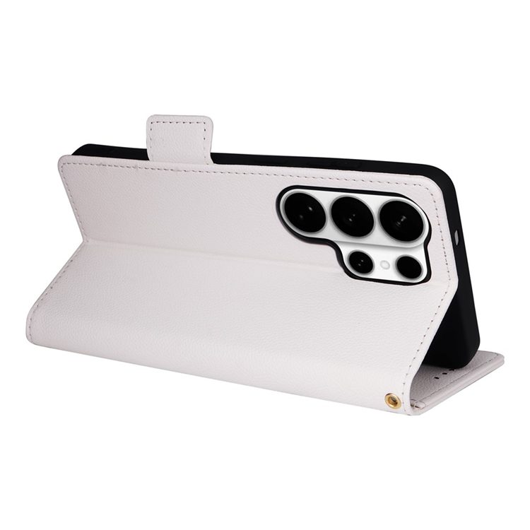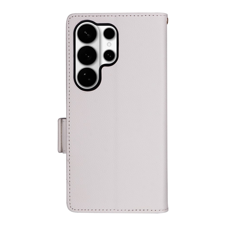 Galaxy S26 Ultra Plånboksfodral Litchi Läder med Handleds Rem - Vit