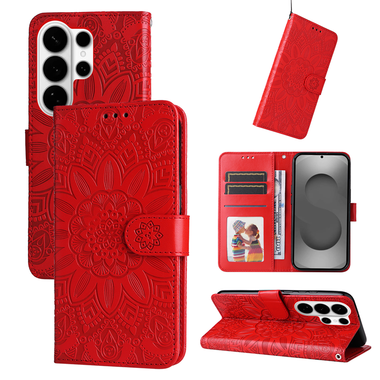 Galaxy S26 Ultra Plånboksfodral Sunflower Imprint Läder - Röd
