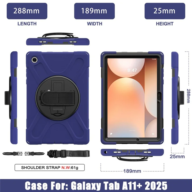 Galaxy Tab A11 Plus Skal Kickstand Silikon Axelrem TPU + PC - Marinblå