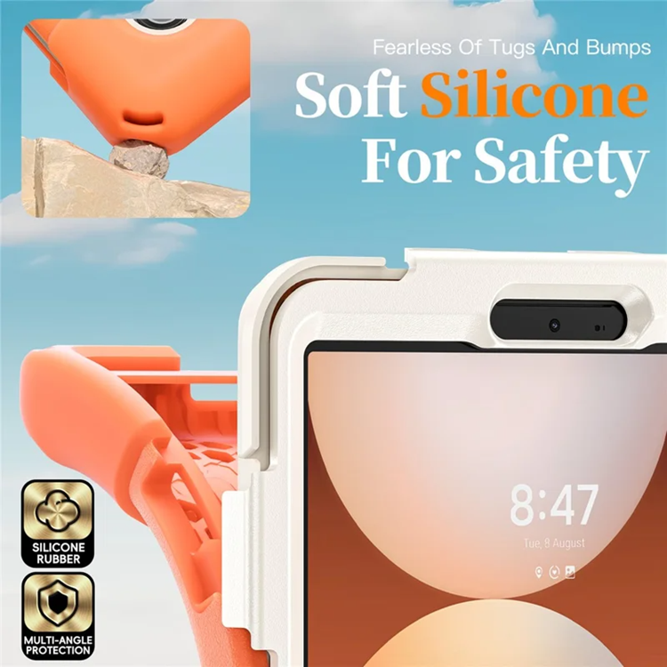 Detta skal är byggt för att skydda – på riktigt. Förstärkta, ihåliga hörn fungerar som stötdämpande buffertar vid fall, medan den tåliga kombinationen av silikon, hård PC och TPU ger både reptålighet och vibrationsskydd. Du kan lita på att din surfplatta är säker, även vid fall från upp till en meter på hårda ytor. Två justerbara ställvinklar gör det enkelt att växla mellan arbete och underhållning med perfekt betraktningsvinkel.