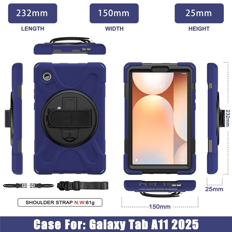 Galaxy Tab A11 Skal Kickstand Silikon Axelrem TPU + PC - Marinblå